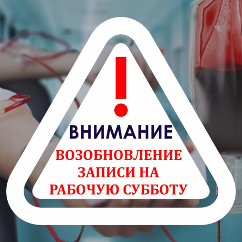 Принято решение, что с АВГУСТА прием доноров в РАБОЧУЮ СУББОТУ будет осуществляться ПО ПРЕДВАРИТЕЛЬНОЙ ЗАПИСИ.