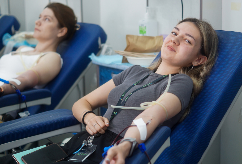 На протяжении трёх дней, с 4 по 6 июня, Мобильный комплекс заготовки крови встречал доноров на территории Поволжского ЦСКО "Ладья" Сбербанк. 244 сотрудника стали донорами крови!