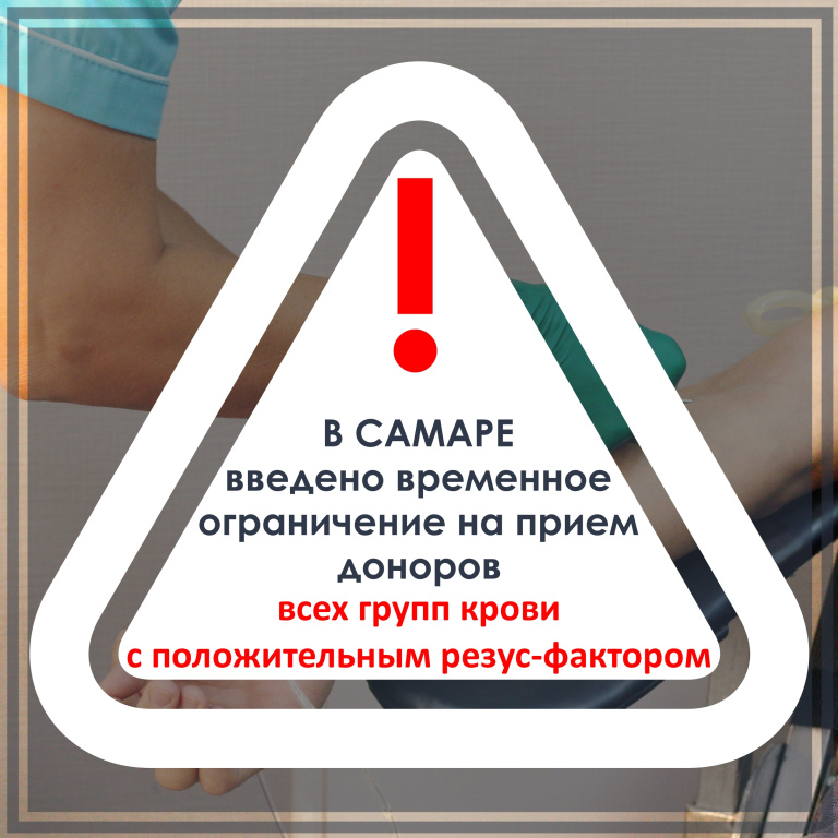 С завтрашнего дня (30.10.2024) на станции переливания крови в САМАРЕ вводится временное ограничение на приём доноров ВСЕХ групп крови с ПОЛОЖИТЕЛЬНЫМ резус-фактором. Ограничение не распространяется на ВЫЕЗДНЫЕ акции.