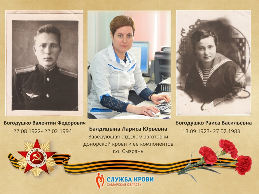 О дедушке и бабушке рассказала нам заведующая отделением заготовки крови и её компонентов г.о. Сызрань, врач-трансфузиолог Балдицына Лариса Юрьевна: