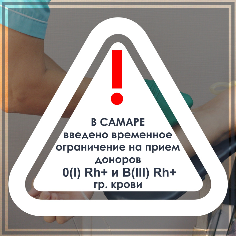 Уважаемые доноры, просим обратить внимание, что с завтрашнего дня (26.08.2025) на станции переливания крови в г. Самара вводится временное ограничение на приём доноров 0(I) Rh+ и B(III) Rh+ групп крови.